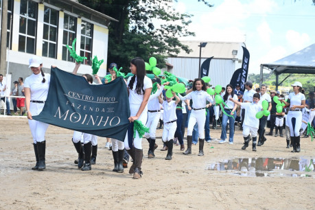 A modalidade Salto consiste basicamente numa prova em que o conjunto (cavalo/cavaleiro) percorre um percurso entre 8 a 12 obstáculos diferentes.